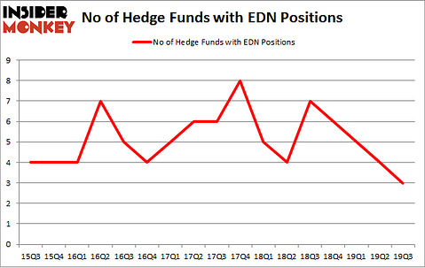 Heading into the fourth quarter of 2019, a total of 3 of the hedge funds tracked by Insider Monkey held long positions in this stock, a change of -25% from the previous quarter. By comparison, 7 hedge funds held shares or bullish call options in EDN a year ago. With hedgies’ sentiment swirling, there exists a few key hedge fund managers who were adding to their holdings considerably (or already accumulated large positions).