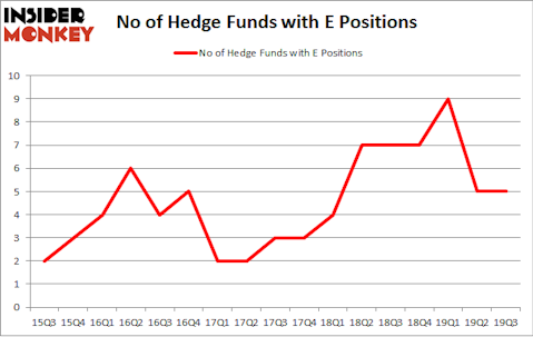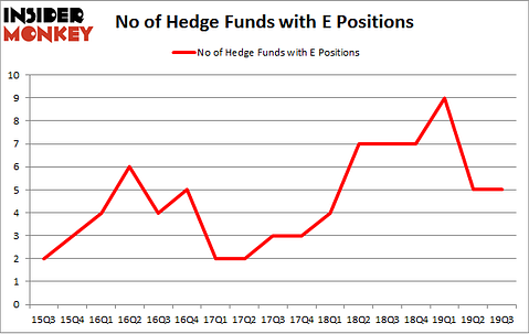 At Q3’s end, a total of 5 of the hedge funds tracked by Insider Monkey were long this stock, a change of 0% from the second quarter of 2019. The graph below displays the number of hedge funds with bullish position in E over the last 17 quarters. So, let’s review which hedge funds were among the top holders of the stock and which hedge funds were making big moves.