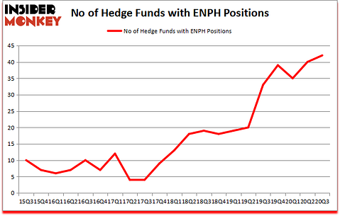 Is ENPH a good stock to buy now? Prominent investors were becoming more confident. The number of long hedge fund positions advanced by 2 in recent months. Enphase Energy Inc (NASDAQ:ENPH) was in 42 hedge funds’ portfolios at the end of the third quarter of 2020. The all time high for this statistic is 40. This means the bullish number of hedge fund positions in this stock currently sits at its all time high. Our calculations also showed that ENPH isn’t among the 30 most popular stocks among hedge funds (click for Q3 rankings and see the video for a quick look at the top 5 stocks). There were 40 hedge funds in our database with ENPH positions at the end of the second quarter.