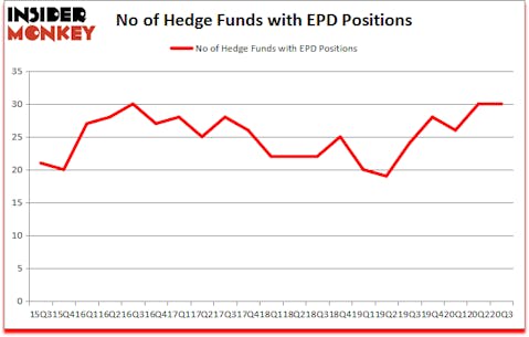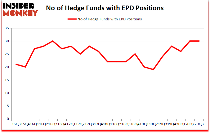 At third quarter’s end, a total of 30 of the hedge funds tracked by Insider Monkey were bullish on this stock, a change of 0% from the previous quarter. By comparison, 24 hedge funds held shares or bullish call options in EPD a year ago. With the smart money’s capital changing hands, there exists a select group of noteworthy hedge fund managers who were increasing their stakes substantially (or already accumulated large positions).