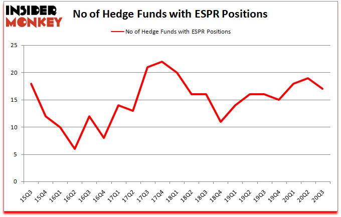 Heading into the fourth quarter of 2020, a total of 17 of the hedge funds tracked by Insider Monkey held long positions in this stock, a change of -11% from the previous quarter. By comparison, 16 hedge funds held shares or bullish call options in ESPR a year ago. So, let’s examine which hedge funds were among the top holders of the stock and which hedge funds were making big moves.