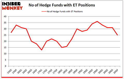 Heading into the first quarter of 2021, a total of 25 of the hedge funds tracked by Insider Monkey were bullish on this stock, a change of -19% from the previous quarter. The graph below displays the number of hedge funds with bullish position in ET over the last 22 quarters. So, let’s review which hedge funds were among the top holders of the stock and which hedge funds were making big moves.