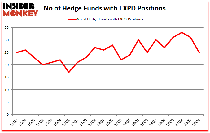 Heading into the first quarter of 2021, a total of 25 of the hedge funds tracked by Insider Monkey were long this stock, a change of -19% from the previous quarter. The graph below displays the number of hedge funds with bullish position in EXPD over the last 22 quarters. With the smart money’s capital changing hands, there exists a few noteworthy hedge fund managers who were increasing their holdings considerably (or already accumulated large positions).