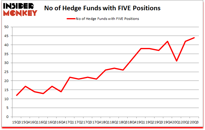 At the end of the third quarter, a total of 44 of the hedge funds tracked by Insider Monkey were long this stock, a change of 5% from the previous quarter. On the other hand, there were a total of 37 hedge funds with a bullish position in FIVE a year ago. With hedgies’ capital changing hands, there exists an “upper tier” of noteworthy hedge fund managers who were upping their holdings significantly (or already accumulated large positions).