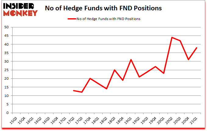 At Q1’s end, a total of 38 of the hedge funds tracked by Insider Monkey held long positions in this stock, a change of 23% from one quarter earlier. By comparison, 23 hedge funds held shares or bullish call options in FND a year ago. With hedge funds’ positions undergoing their usual ebb and flow, there exists a select group of noteworthy hedge fund managers who were upping their stakes significantly (or already accumulated large positions).