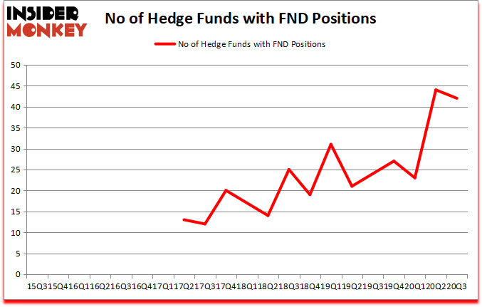 At Q3’s end, a total of 42 of the hedge funds tracked by Insider Monkey were long this stock, a change of -5% from the previous quarter. On the other hand, there were a total of 24 hedge funds with a bullish position in FND a year ago. With hedge funds’ sentiment swirling, there exists a few notable hedge fund managers who were adding to their stakes significantly (or already accumulated large positions).