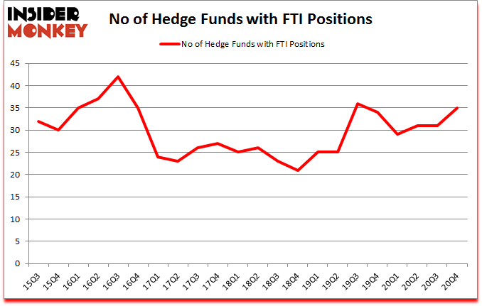 Is FTI stock a buy? Investors who are in the know were in a bullish mood. The number of bullish hedge fund positions inched up by 4 lately. TechnipFMC plc (NYSE:FTI) was in 35 hedge funds’ portfolios at the end of the fourth quarter of 2020. The all time high for this statistic is 42. Our calculations also showed that FTI isn’t among the 30 most popular stocks among hedge funds (click for Q4 rankings).