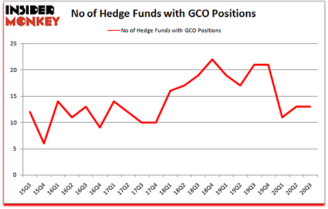 At third quarter’s end, a total of 13 of the hedge funds tracked by Insider Monkey held long positions in this stock, a change of 0% from one quarter earlier. The graph below displays the number of hedge funds with bullish position in GCO over the last 21 quarters. So, let’s examine which hedge funds were among the top holders of the stock and which hedge funds were making big moves.