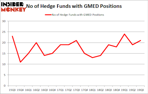 Is Globus Medical Inc (NYSE:GMED) a marvelous investment today? Prominent investors are getting more optimistic. The number of bullish hedge fund positions advanced by 2 in recent months. Our calculations also showed that GMED isn’t among the 30 most popular stocks among hedge funds (click for Q3 rankings and see the video below for Q2 rankings). GMED was in 21 hedge funds’ portfolios at the end of the third quarter of 2019. There were 19 hedge funds in our database with GMED holdings at the end of the previous quarter.