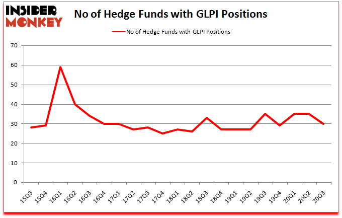 Is GLPI a good stock to buy? The best stock pickers were selling. The number of long hedge fund positions shrunk by 5 recently. Gaming and Leisure Properties Inc (NASDAQ:GLPI) was in 30 hedge funds’ portfolios at the end of the third quarter of 2020. The all time high for this statistic is 59. Our calculations also showed that GLPI isn’t among the 30 most popular stocks among hedge funds (click for Q3 rankings and see the video for a quick look at the top 5 stocks).