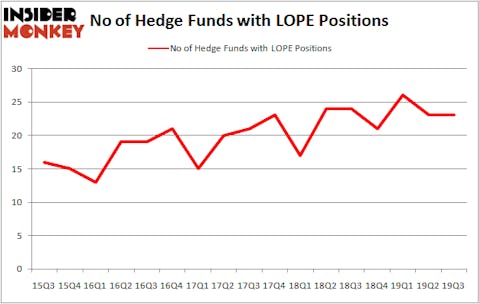 At the end of the third quarter, a total of 23 of the hedge funds tracked by Insider Monkey held long positions in this stock, a change of 0% from the previous quarter. By comparison, 24 hedge funds held shares or bullish call options in LOPE a year ago. So, let’s find out which hedge funds were among the top holders of the stock and which hedge funds were making big moves.