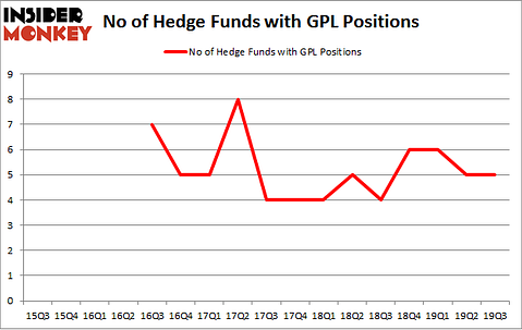 Heading into the fourth quarter of 2019, a total of 5 of the hedge funds tracked by Insider Monkey were bullish on this stock, a change of 0% from one quarter earlier. Below, you can check out the change in hedge fund sentiment towards GPL over the last 17 quarters. With hedgies’ capital changing hands, there exists an “upper tier” of key hedge fund managers who were boosting their stakes substantially (or already accumulated large positions).