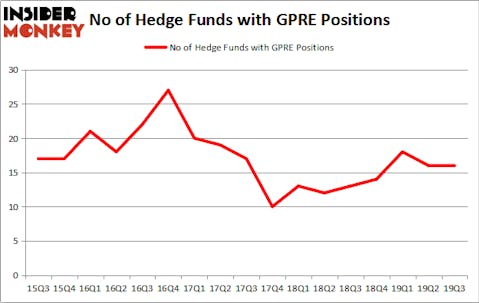 At Q3’s end, a total of 16 of the hedge funds tracked by Insider Monkey were long this stock, a change of 0% from one quarter earlier. The graph below displays the number of hedge funds with bullish position in GPRE over the last 17 quarters. So, let’s find out which hedge funds were among the top holders of the stock and which hedge funds were making big moves.