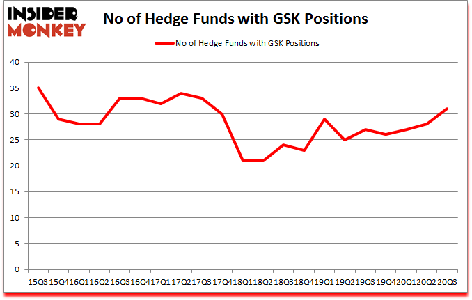 Is GSK a good stock to buy? Hedge funds were in a bullish mood. The number of bullish hedge fund positions went up by 3 recently. GlaxoSmithKline plc (NYSE:GSK) was in 31 hedge funds’ portfolios at the end of the third quarter of 2020. The all time high for this statistic is 35. Our calculations also showed that GSK isn’t among the 30 most popular stocks among hedge funds (click for Q3 rankings and see the video for a quick look at the top 5 stocks).