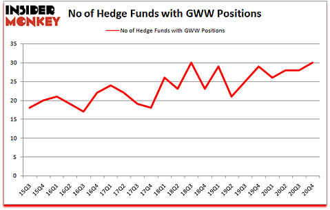 Heading into the first quarter of 2021, a total of 30 of the hedge funds tracked by Insider Monkey were long this stock, a change of 7% from the previous quarter. By comparison, 29 hedge funds held shares or bullish call options in GWW a year ago. With hedgies’ positions undergoing their usual ebb and flow, there exists a few key hedge fund managers who were increasing their holdings substantially (or already accumulated large positions).