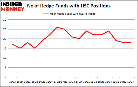 Heading into the fourth quarter of 2019, a total of 18 of the hedge funds tracked by Insider Monkey were bullish on this stock, a change of 0% from one quarter earlier. Below, you can check out the change in hedge fund sentiment towards HSC over the last 17 quarters. So, let’s examine which hedge funds were among the top holders of the stock and which hedge funds were making big moves.