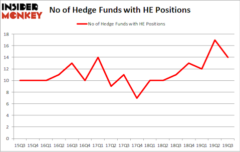 At Q3’s end, a total of 14 of the hedge funds tracked by Insider Monkey were long this stock, a change of -18% from one quarter earlier. Below, you can check out the change in hedge fund sentiment towards HE over the last 17 quarters. So, let’s see which hedge funds were among the top holders of the stock and which hedge funds were making big moves.
