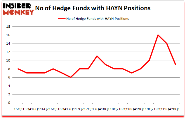 Heading into the second quarter of 2020, a total of 9 of the hedge funds tracked by Insider Monkey held long positions in this stock, a change of -36% from the previous quarter. The graph below displays the number of hedge funds with bullish position in HAYN over the last 18 quarters. So, let’s check out which hedge funds were among the top holders of the stock and which hedge funds were making big moves.