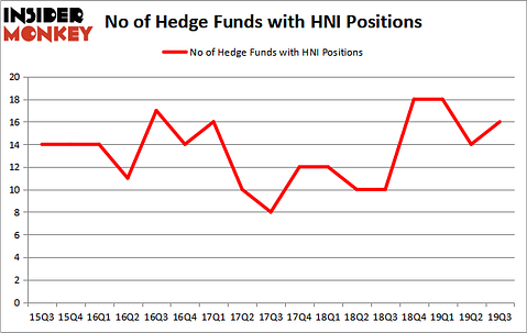 HNI Corp (NYSE:HNI) was in 16 hedge funds’ portfolios at the end of the third quarter of 2019. HNI investors should pay attention to an increase in support from the world’s most elite money managers recently. There were 14 hedge funds in our database with HNI holdings at the end of the previous quarter. Our calculations also showed that HNI isn’t among the 30 most popular stocks among hedge funds (click for Q3 rankings and see the video below for Q2 rankings).