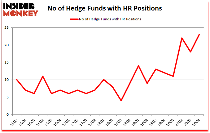 At the end of December, a total of 23 of the hedge funds tracked by Insider Monkey were bullish on this stock, a change of 28% from the previous quarter. Below, you can check out the change in hedge fund sentiment towards HR over the last 22 quarters. So, let’s examine which hedge funds were among the top holders of the stock and which hedge funds were making big moves.