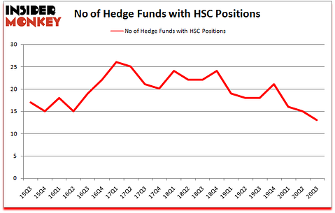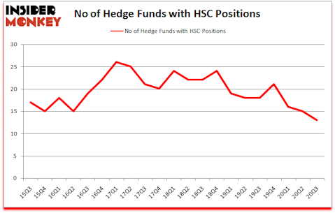 At the end of September, a total of 13 of the hedge funds tracked by Insider Monkey were long this stock, a change of -13% from one quarter earlier. Below, you can check out the change in hedge fund sentiment towards HSC over the last 21 quarters. So, let’s find out which hedge funds were among the top holders of the stock and which hedge funds were making big moves.