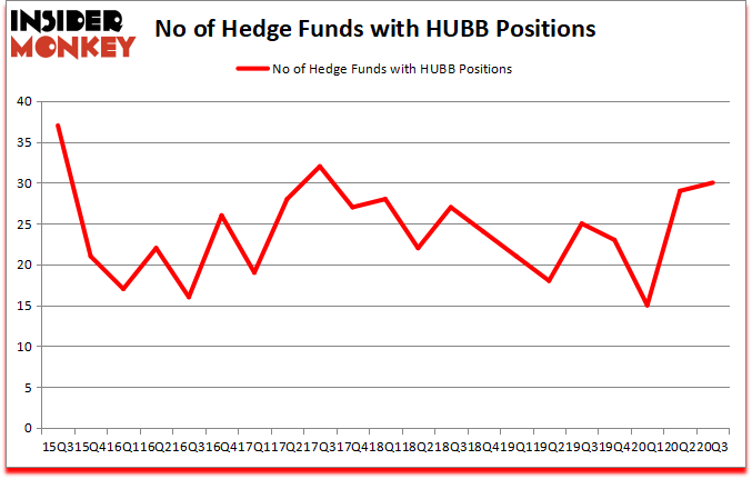 At the end of September, a total of 30 of the hedge funds tracked by Insider Monkey held long positions in this stock, a change of 3% from the previous quarter. Below, you can check out the change in hedge fund sentiment towards HUBB over the last 21 quarters. So, let’s find out which hedge funds were among the top holders of the stock and which hedge funds were making big moves.