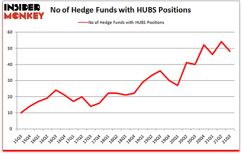 Heading into the fourth quarter of 2021, a total of 48 of the hedge funds tracked by Insider Monkey were bullish on this stock, a change of -11% from one quarter earlier. Below, you can check out the change in hedge fund sentiment towards HUBS over the last 25 quarters. So, let’s examine which hedge funds were among the top holders of the stock and which hedge funds were making big moves.