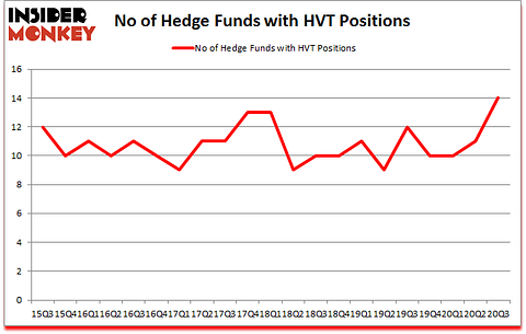 At the end of September, a total of 14 of the hedge funds tracked by Insider Monkey were bullish on this stock, a change of 27% from the previous quarter. Below, you can check out the change in hedge fund sentiment towards HVT over the last 21 quarters. So, let’s review which hedge funds were among the top holders of the stock and which hedge funds were making big moves.