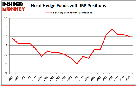At the end of September, a total of 20 of the hedge funds tracked by Insider Monkey held long positions in this stock, a change of -5% from the previous quarter. Below, you can check out the change in hedge fund sentiment towards IBP over the last 21 quarters. So, let’s see which hedge funds were among the top holders of the stock and which hedge funds were making big moves.