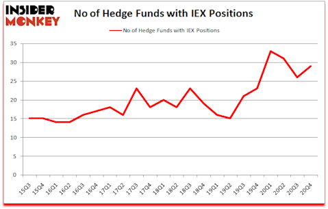 Is IEX stock a buy? The smart money was becoming hopeful. The number of long hedge fund positions increased by 3 in recent months. IDEX Corporation (NYSE:IEX) was in 29 hedge funds’ portfolios at the end of December. The all time high for this statistic is 33. Our calculations also showed that IEX isn’t among the 30 most popular stocks among hedge funds (click for Q4 rankings). There were 26 hedge funds in our database with IEX positions at the end of the third quarter.