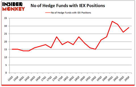 Is IEX stock a buy? The smart money was becoming hopeful. The number of long hedge fund positions increased by 3 in recent months. IDEX Corporation (NYSE:IEX) was in 29 hedge funds’ portfolios at the end of December. The all time high for this statistic is 33. Our calculations also showed that IEX isn’t among the 30 most popular stocks among hedge funds (click for Q4 rankings). There were 26 hedge funds in our database with IEX positions at the end of the third quarter.