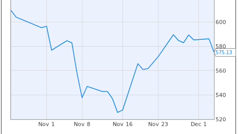 For two months, from mid-September to mid-November, Apple Inc. (NASDAQ:AAPL) dropped from $700 to about $525 per share- a correction of 25%. The stock was still well up from its levels at the beginning of the year- in early January it was trading a bit above $400- but market watchers feared that the stock would continue down. However, we’ve since seen a rally of about 10% as we close in on the end of the year.