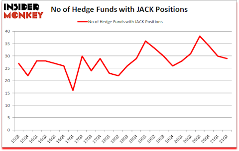 At the end of the second quarter, a total of 29 of the hedge funds tracked by Insider Monkey were bullish on this stock, a change of -3% from one quarter earlier. Below, you can check out the change in hedge fund sentiment towards JACK over the last 24 quarters. So, let’s see which hedge funds were among the top holders of the stock and which hedge funds were making big moves.