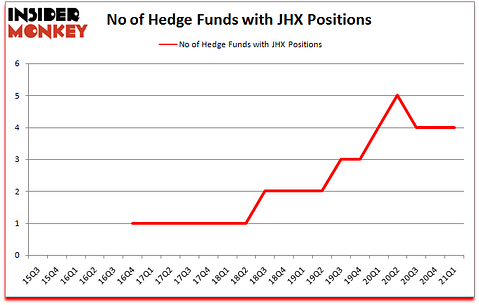 At Q1’s end, a total of 4 of the hedge funds tracked by Insider Monkey were bullish on this stock, a change of 0% from one quarter earlier. By comparison, 4 hedge funds held shares or bullish call options in JHX a year ago. So, let’s examine which hedge funds were among the top holders of the stock and which hedge funds were making big moves.