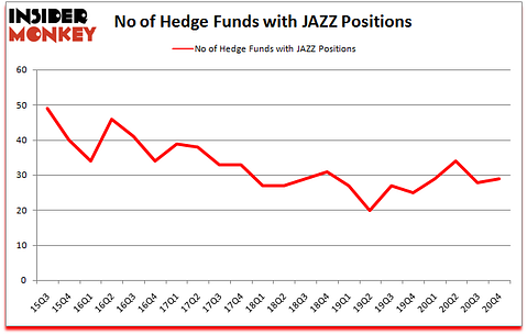 Is JAZZ stock a buy? Jazz Pharmaceuticals Plc (NASDAQ:JAZZ) investors should be aware of an increase in hedge fund sentiment lately. Jazz Pharmaceuticals Plc (NASDAQ:JAZZ) was in 29 hedge funds’ portfolios at the end of December. The all time high for this statistic is 49. There were 28 hedge funds in our database with JAZZ positions at the end of the third quarter. Our calculations also showed that JAZZ isn’t among the 30 most popular stocks among hedge funds (click for Q4 rankings).