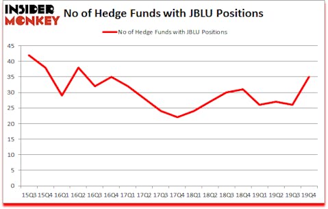 JetBlue Airways Corporation (NASDAQ:JBLU) shareholders have witnessed an increase in hedge fund sentiment in recent months. JBLU was in 35 hedge funds’ portfolios at the end of December. There were 26 hedge funds in our database with JBLU holdings at the end of the previous quarter. Our calculations also showed that JBLU isn’t among the 30 most popular stocks among hedge funds (click for Q4 rankings and see the video at the end of this article for Q3 rankings).