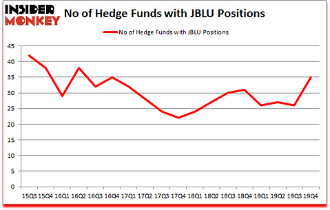 JetBlue Airways Corporation (NASDAQ:JBLU) shareholders have witnessed an increase in hedge fund sentiment in recent months. JBLU was in 35 hedge funds’ portfolios at the end of December. There were 26 hedge funds in our database with JBLU holdings at the end of the previous quarter. Our calculations also showed that JBLU isn’t among the 30 most popular stocks among hedge funds (click for Q4 rankings and see the video at the end of this article for Q3 rankings).