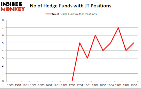 At the end of the third quarter, a total of 5 of the hedge funds tracked by Insider Monkey were bullish on this stock, a change of 25% from the second quarter of 2019. By comparison, 4 hedge funds held shares or bullish call options in JT a year ago. With hedgies’ sentiment swirling, there exists a select group of notable hedge fund managers who were adding to their stakes meaningfully (or already accumulated large positions).