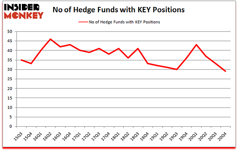 Is KEY stock a buy? KeyCorp (NYSE:KEY) investors should pay attention to a decrease in hedge fund sentiment of late. KeyCorp (NYSE:KEY) was in 29 hedge funds’ portfolios at the end of the fourth quarter of 2020. The all time high for this statistic is 46. Our calculations also showed that KEY isn’t among the 30 most popular stocks among hedge funds (click for Q4 rankings).