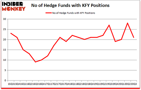 At Q3’s end, a total of 21 of the hedge funds tracked by Insider Monkey were bullish on this stock, a change of -25% from the previous quarter. The graph below displays the number of hedge funds with bullish position in KFY over the last 21 quarters. With hedgies’ positions undergoing their usual ebb and flow, there exists a select group of key hedge fund managers who were upping their holdings substantially (or already accumulated large positions).
