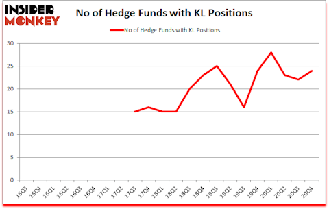At Q4’s end, a total of 24 of the hedge funds tracked by Insider Monkey were bullish on this stock, a change of 9% from the previous quarter. The graph below displays the number of hedge funds with bullish position in KL over the last 22 quarters. So, let’s find out which hedge funds were among the top holders of the stock and which hedge funds were making big moves.