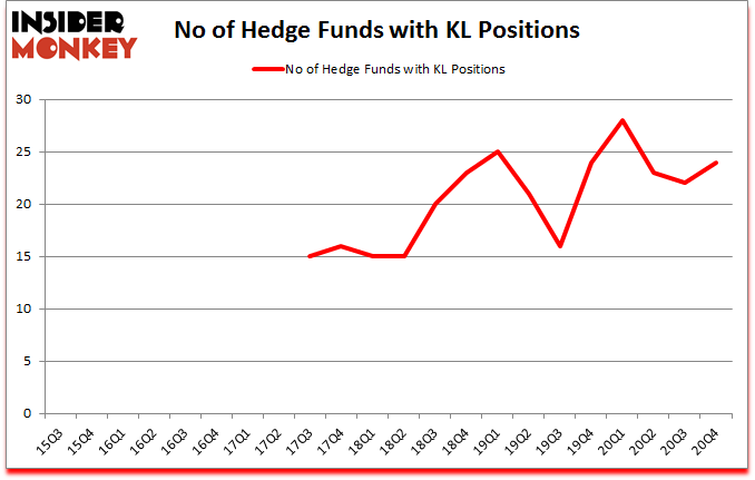 At Q4’s end, a total of 24 of the hedge funds tracked by Insider Monkey were bullish on this stock, a change of 9% from the previous quarter. The graph below displays the number of hedge funds with bullish position in KL over the last 22 quarters. So, let’s find out which hedge funds were among the top holders of the stock and which hedge funds were making big moves.