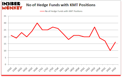 At the end of September, a total of 16 of the hedge funds tracked by Insider Monkey held long positions in this stock, a change of 60% from one quarter earlier. On the other hand, there were a total of 27 hedge funds with a bullish position in KMT a year ago. With hedge funds’ positions undergoing their usual ebb and flow, there exists a few key hedge fund managers who were increasing their holdings meaningfully (or already accumulated large positions).