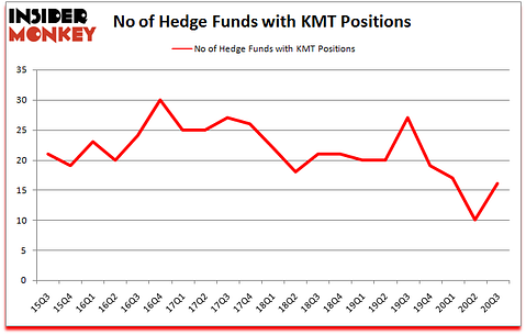 At the end of September, a total of 16 of the hedge funds tracked by Insider Monkey held long positions in this stock, a change of 60% from one quarter earlier. On the other hand, there were a total of 27 hedge funds with a bullish position in KMT a year ago. With hedge funds’ positions undergoing their usual ebb and flow, there exists a few key hedge fund managers who were increasing their holdings meaningfully (or already accumulated large positions).