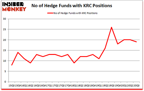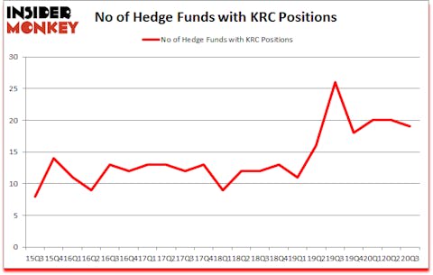 At Q3’s end, a total of 19 of the hedge funds tracked by Insider Monkey were bullish on this stock, a change of -5% from the second quarter of 2020. The graph below displays the number of hedge funds with bullish position in KRC over the last 21 quarters. With hedge funds’ capital changing hands, there exists an “upper tier” of key hedge fund managers who were upping their stakes meaningfully (or already accumulated large positions).