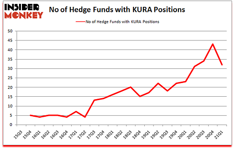 Heading into the second quarter of 2021, a total of 32 of the hedge funds tracked by Insider Monkey held long positions in this stock, a change of -26% from one quarter earlier. The graph below displays the number of hedge funds with bullish position in KURA over the last 23 quarters. So, let’s check out which hedge funds were among the top holders of the stock and which hedge funds were making big moves.
