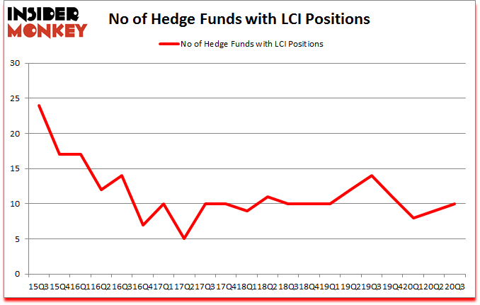 At the end of September, a total of 10 of the hedge funds tracked by Insider Monkey held long positions in this stock, a change of 11% from the second quarter of 2020. The graph below displays the number of hedge funds with bullish position in LCI over the last 21 quarters. So, let’s check out which hedge funds were among the top holders of the stock and which hedge funds were making big moves.