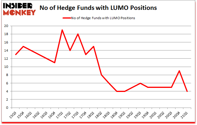 Heading into the second quarter of 2021, a total of 4 of the hedge funds tracked by Insider Monkey were long this stock, a change of -56% from one quarter earlier. The graph below displays the number of hedge funds with bullish position in LUMO over the last 23 quarters. So, let’s find out which hedge funds were among the top holders of the stock and which hedge funds were making big moves.