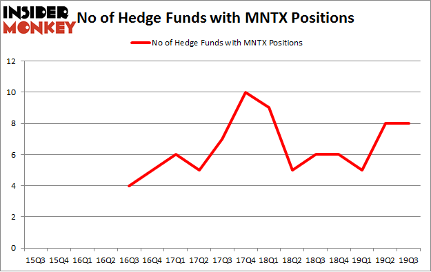 At the end of the third quarter, a total of 8 of the hedge funds tracked by Insider Monkey were long this stock, a change of 0% from the previous quarter. On the other hand, there were a total of 6 hedge funds with a bullish position in MNTX a year ago. So, let’s see which hedge funds were among the top holders of the stock and which hedge funds were making big moves.