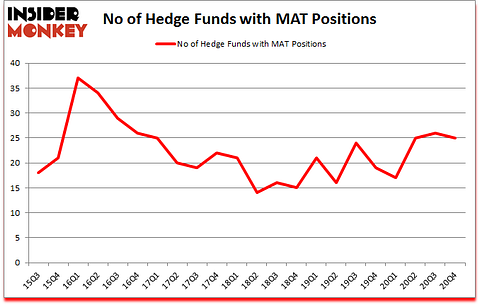 Is MAT stock a buy? Mattel, Inc. (NASDAQ:MAT) shareholders have witnessed a decrease in activity from the world’s largest hedge funds of late. Mattel, Inc. (NASDAQ:MAT) was in 25 hedge funds’ portfolios at the end of December. The all time high for this statistic is 37. Our calculations also showed that MAT isn’t among the 30 most popular stocks among hedge funds (click for Q4 rankings).